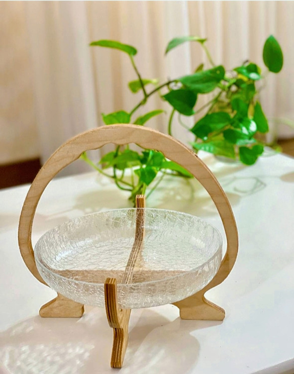 ظرف پذیرای آبگز شیشه ترک پایه چوبی دسته دار ضدآب و قابل جدا شدن هستش مناسب پذیرای وهدیه دادن