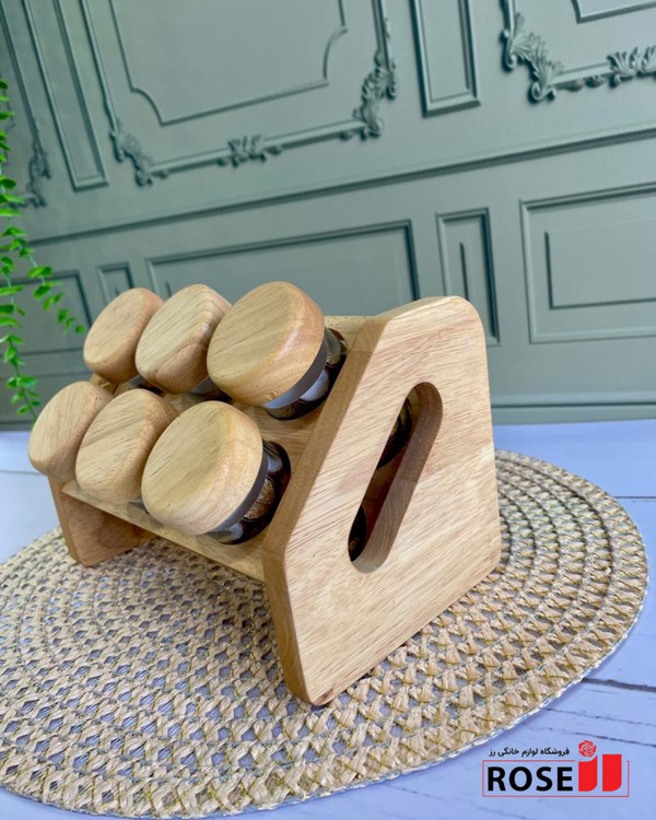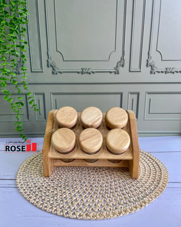 بانکه ادویه همراه استند بامبو دارای سری نمک پاش