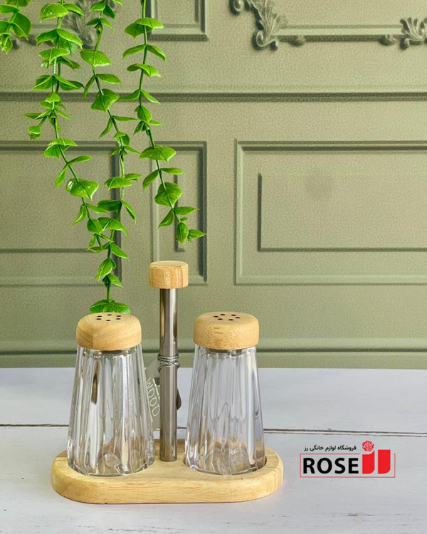 نمک پاش اکرولیک دوقلو همراه استندبا کفی بامبو