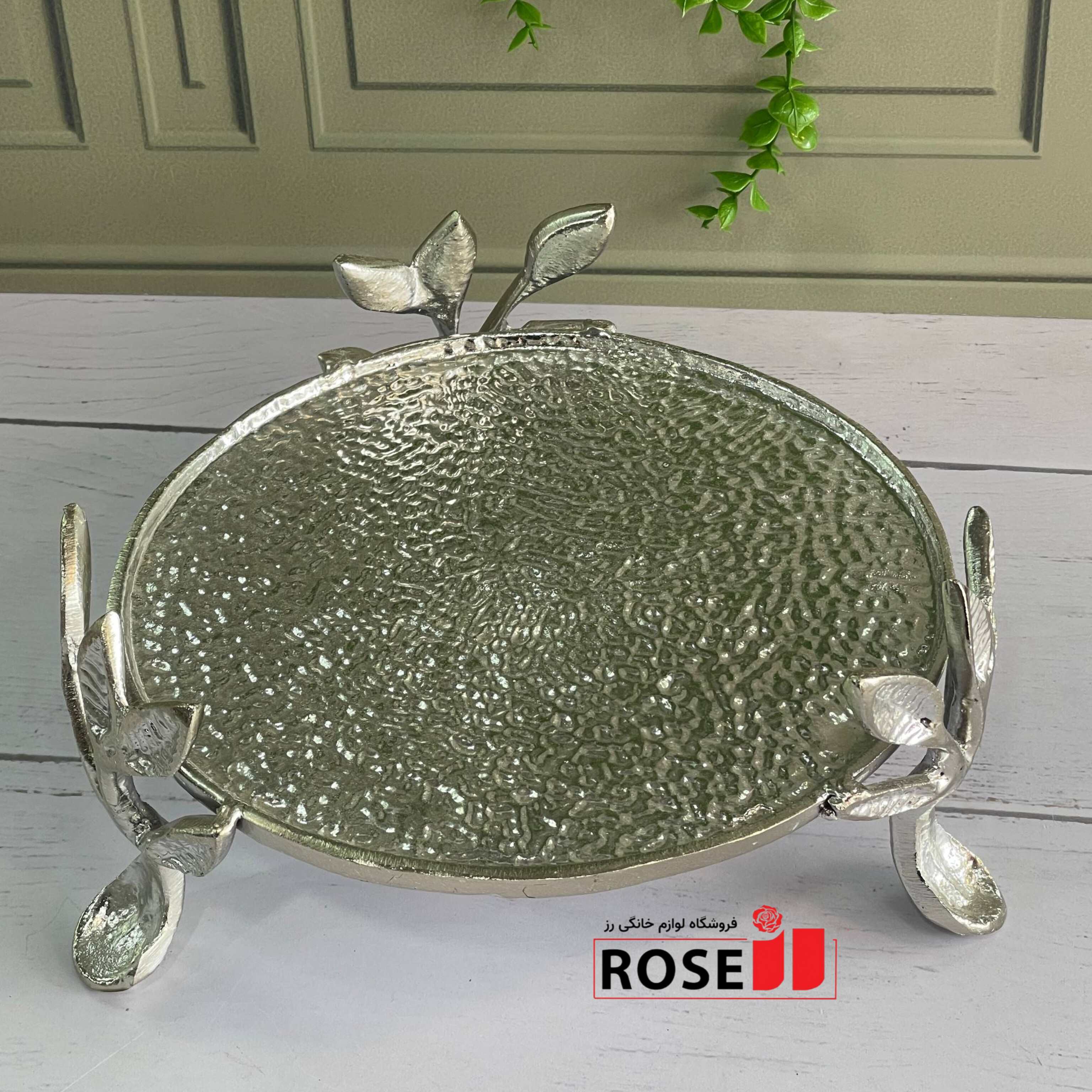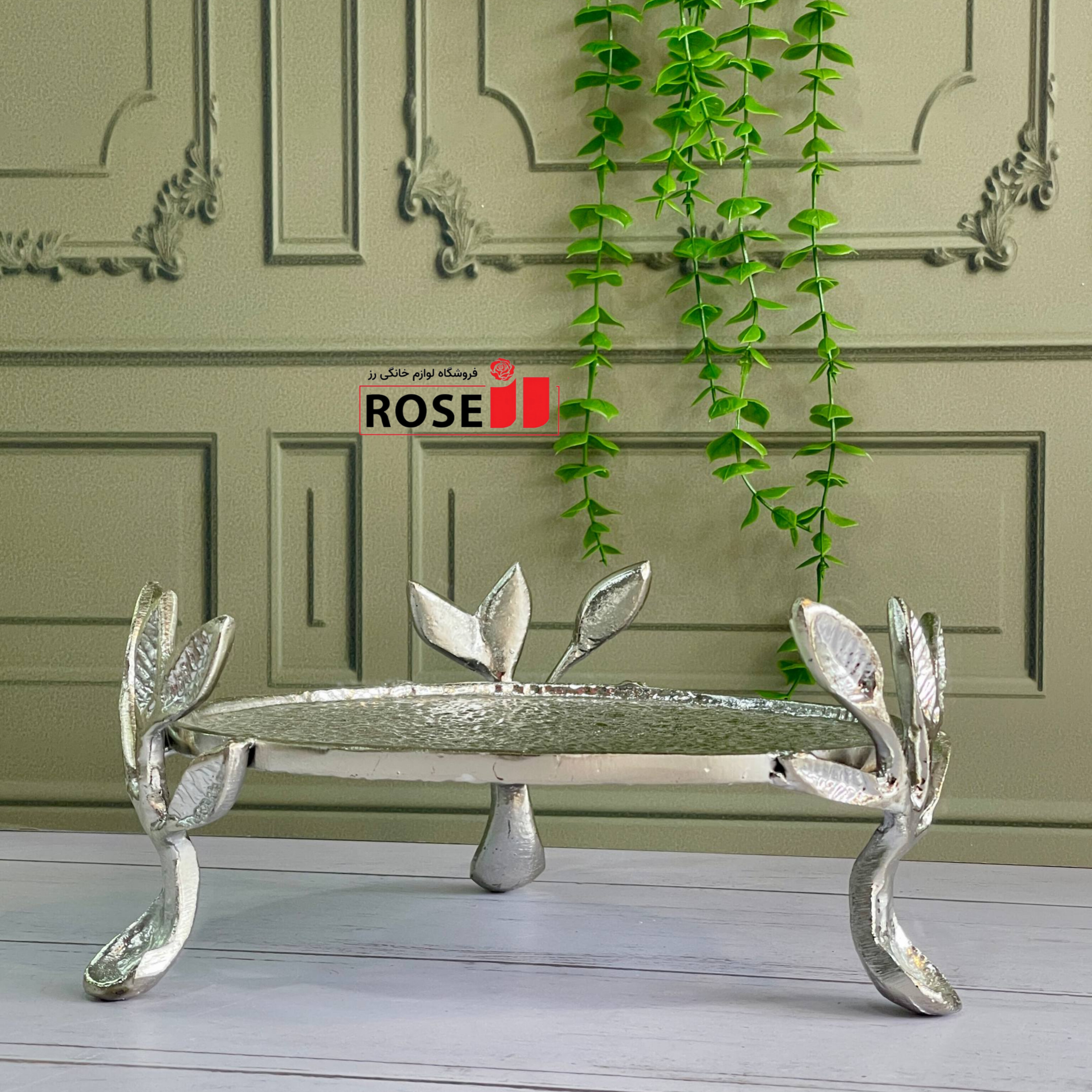 ظروف پذیرایی شیرینی خوری سه پایه طرح برگ نقره ای