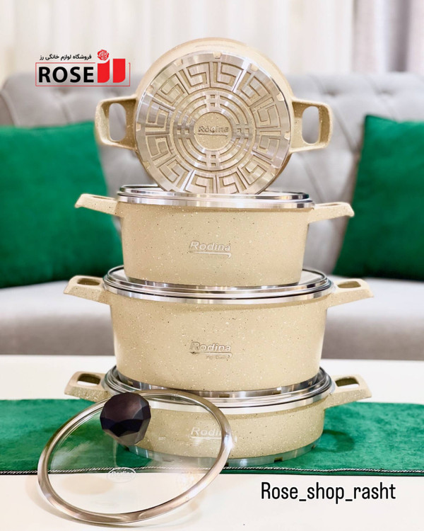 سرویس قابلمه 8پارچه Rodina درسه رنگ مشکی، کرم، قهوه ای