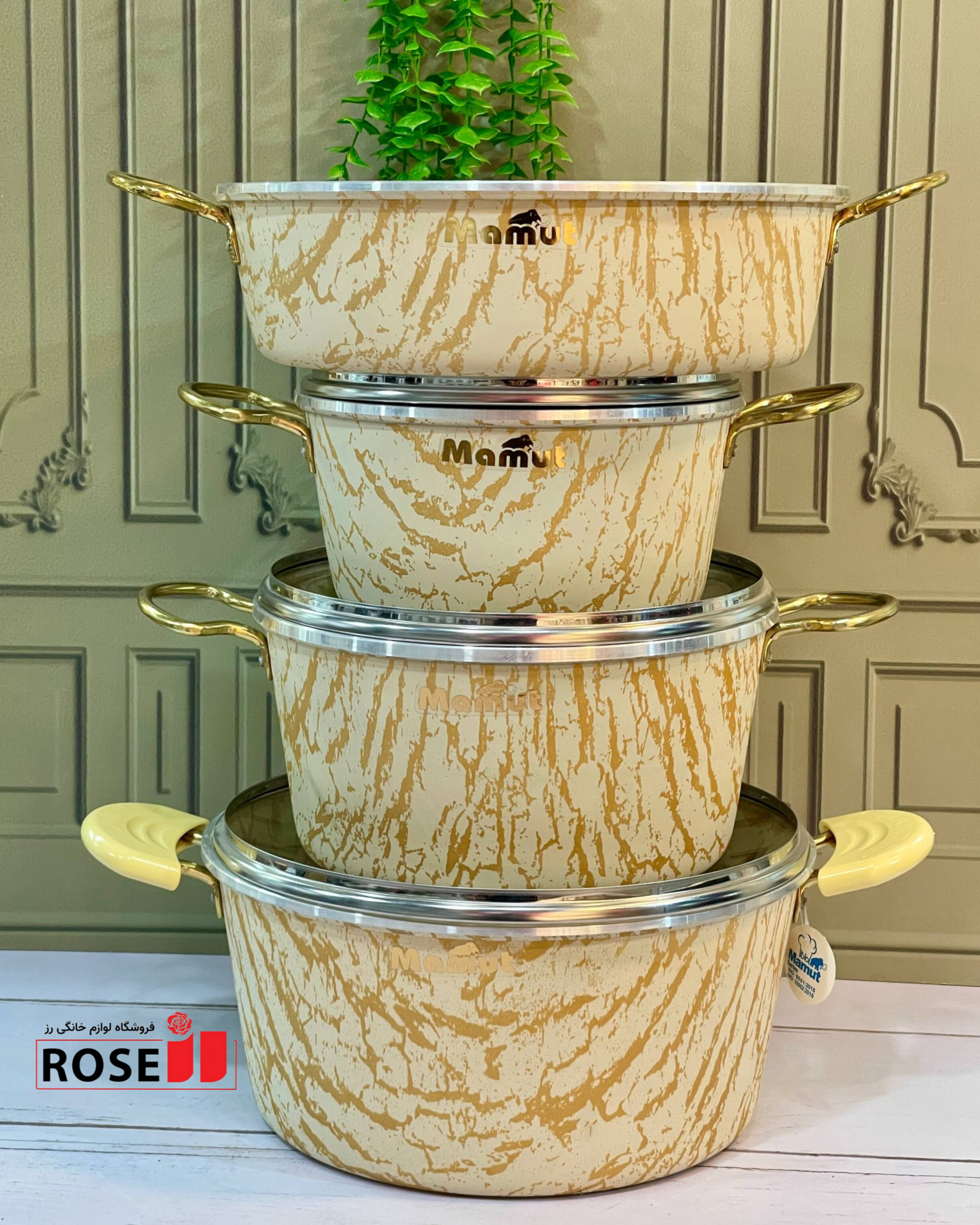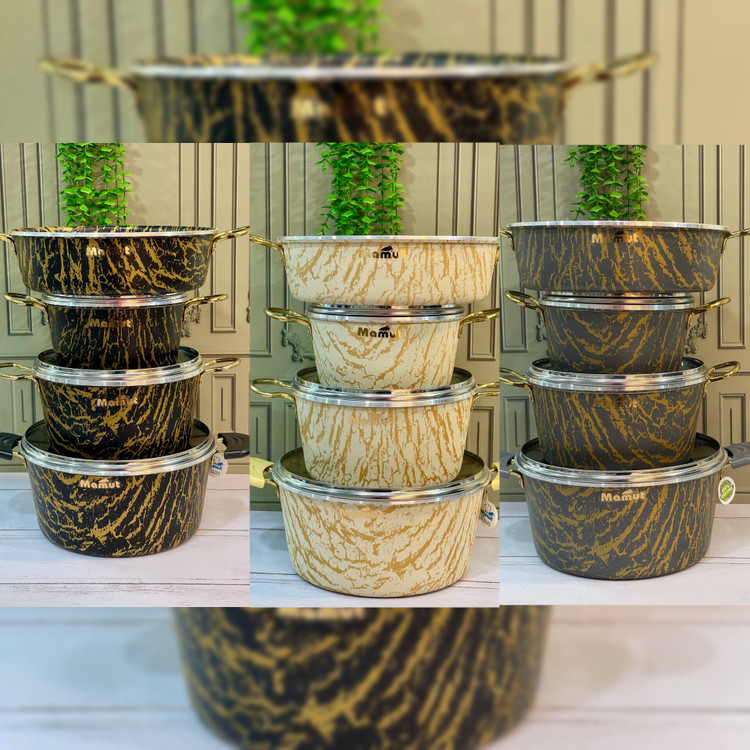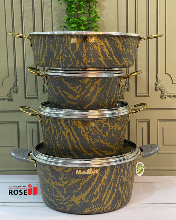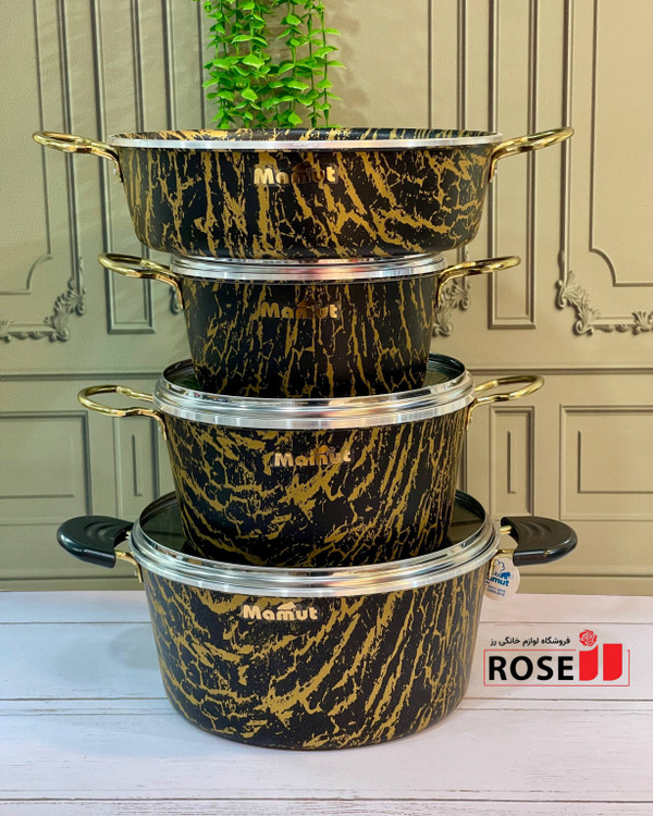 سرویس قابلمه ۱۲ پارچه طرح سنگ (ماربل) ماموت ، 🔷 بابسته بندی کارتن مادری بسیار شیک و محکم 🔰نچسب و ضد خش با کیفیت عالی 🌈در 3رنگ پرفروش ، مشکی طلای ،کرم طلای، خاکستری طلای
